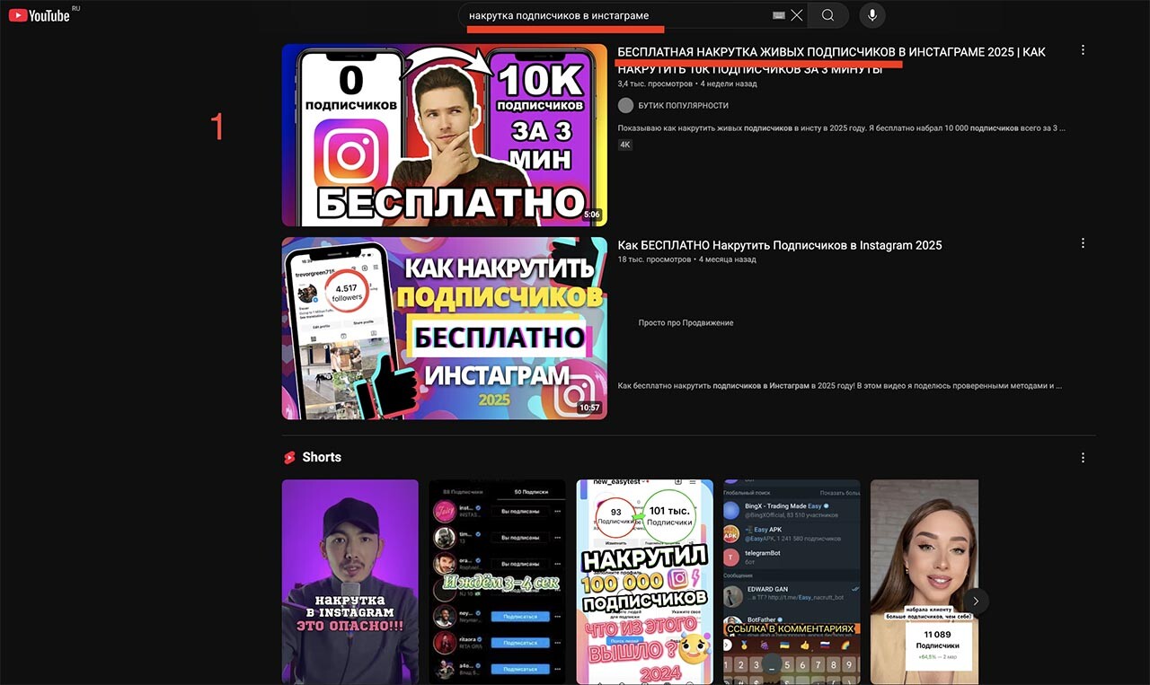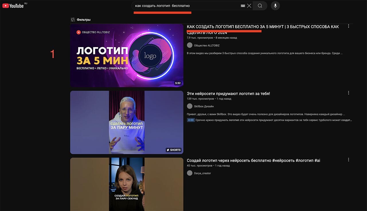 1-я позиция в поиске ютуба.