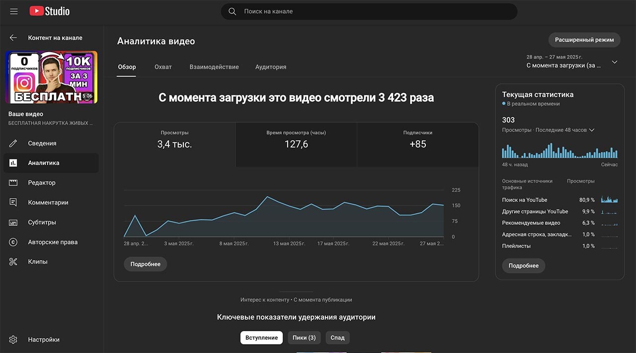 После выхода видео в ТОП3 поиска ютуба - заинтересованная аудитория с нужного ключевого слова заходит на ваше видео и вы получаете целевые просмотры. Просмотры от самых горячих клиентов, так как ваше видео в самом ТОПе органического поиска, а не в рекламе. Это самая платежеспособная аудитория.