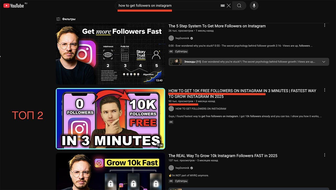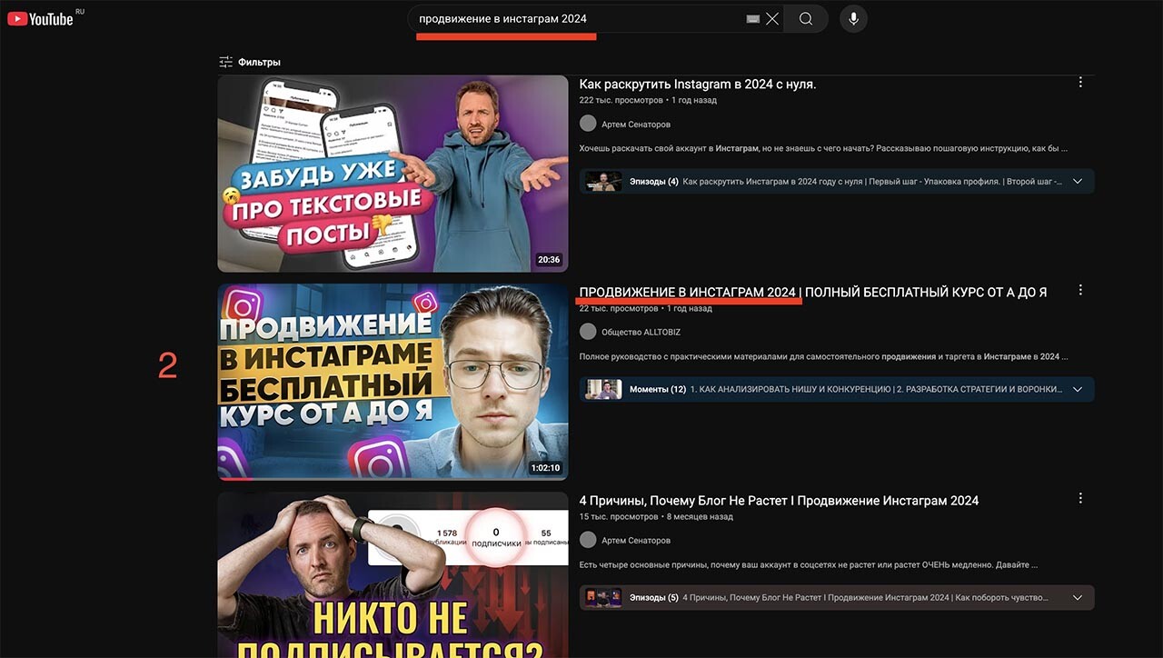 2-я позиция в поиске ютуба.