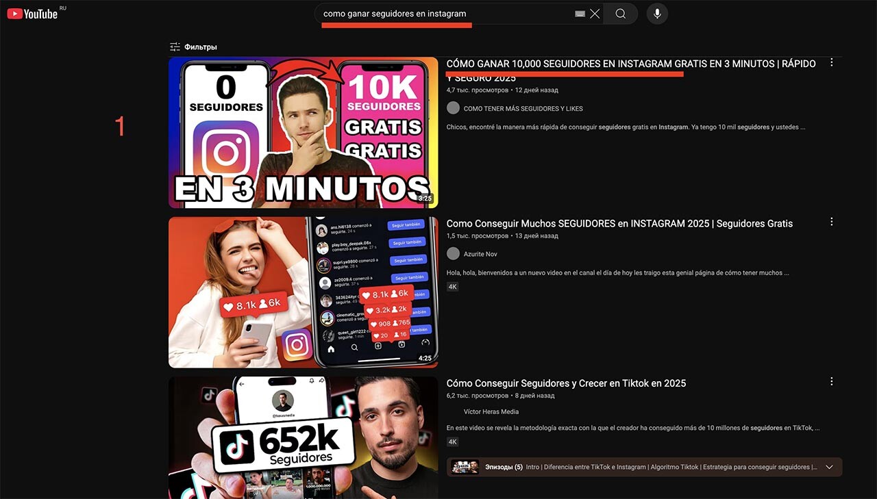 1-я позиция в поиске ютуба.